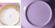 Popov cup and saucer, each piece with pink enamel ground, decorated in black with neoclassical devices and further embellished with fine gilt borders, the handle with an impressed flower motif. Underglaze blue mark to the cup; impressed mark to the saucer.
